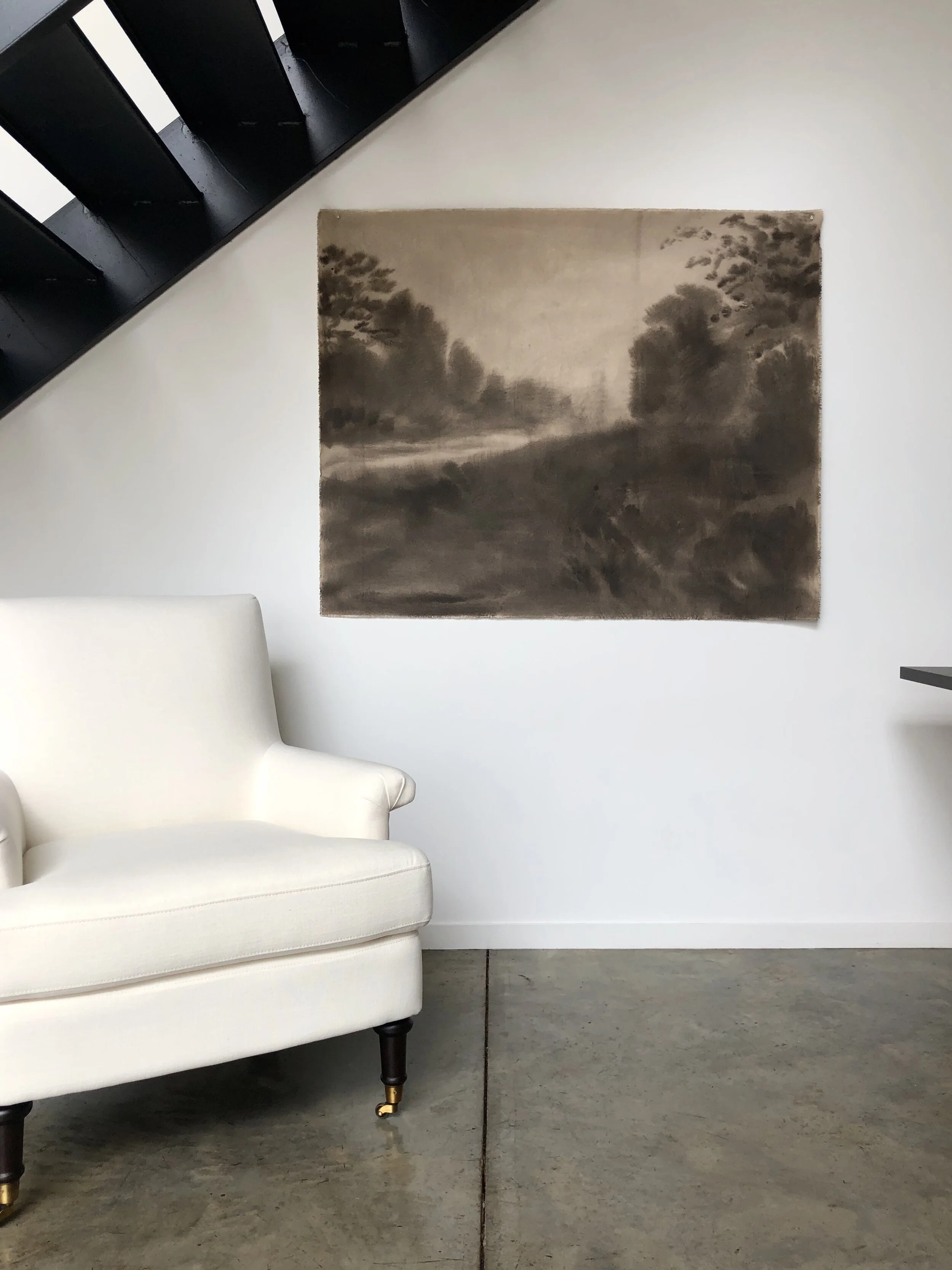 Original watercolor landscape painting on raw canvas.