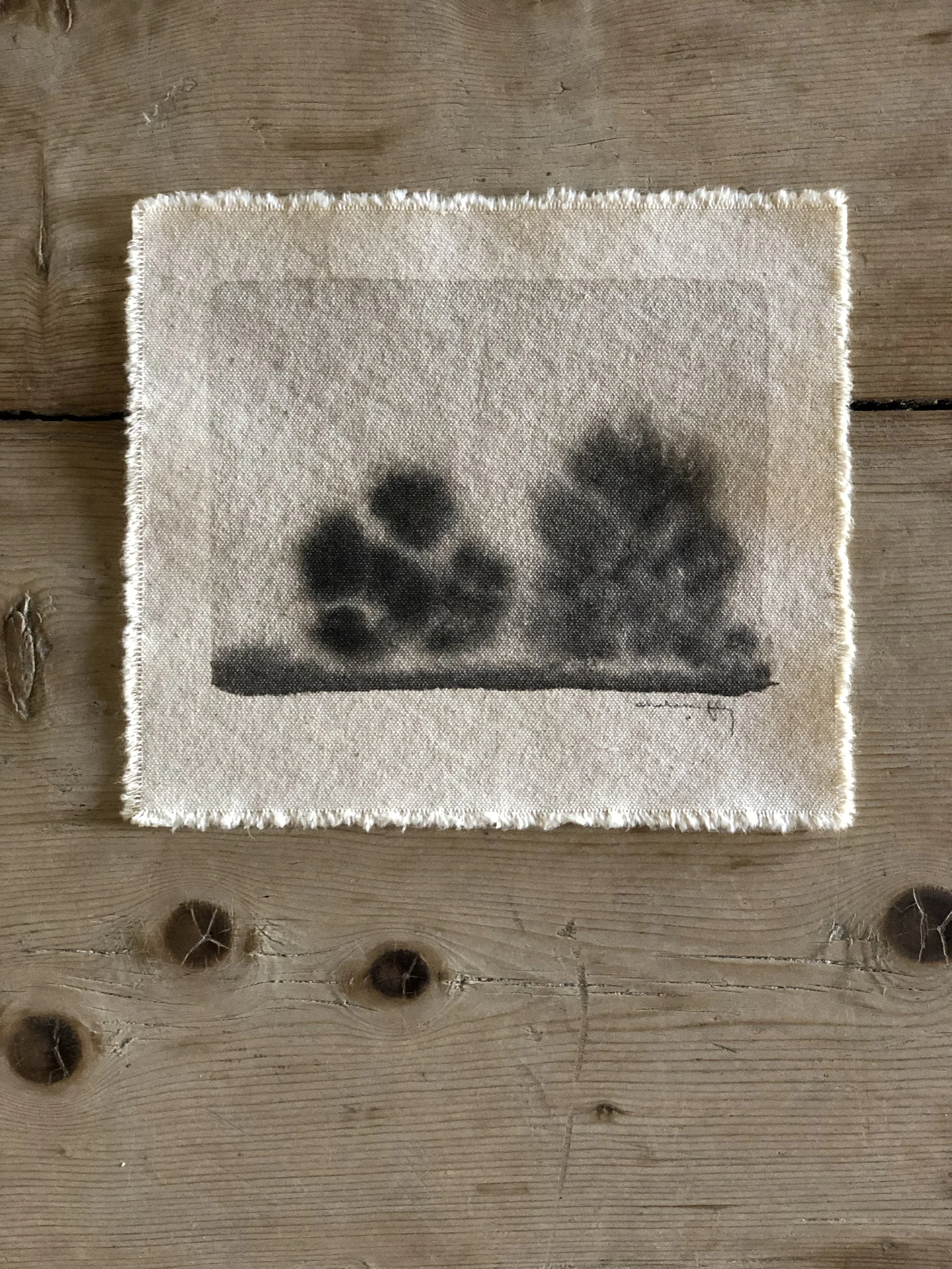 Original watercolor landscape painting on raw canvas, by Chelsea Fly. 2019.