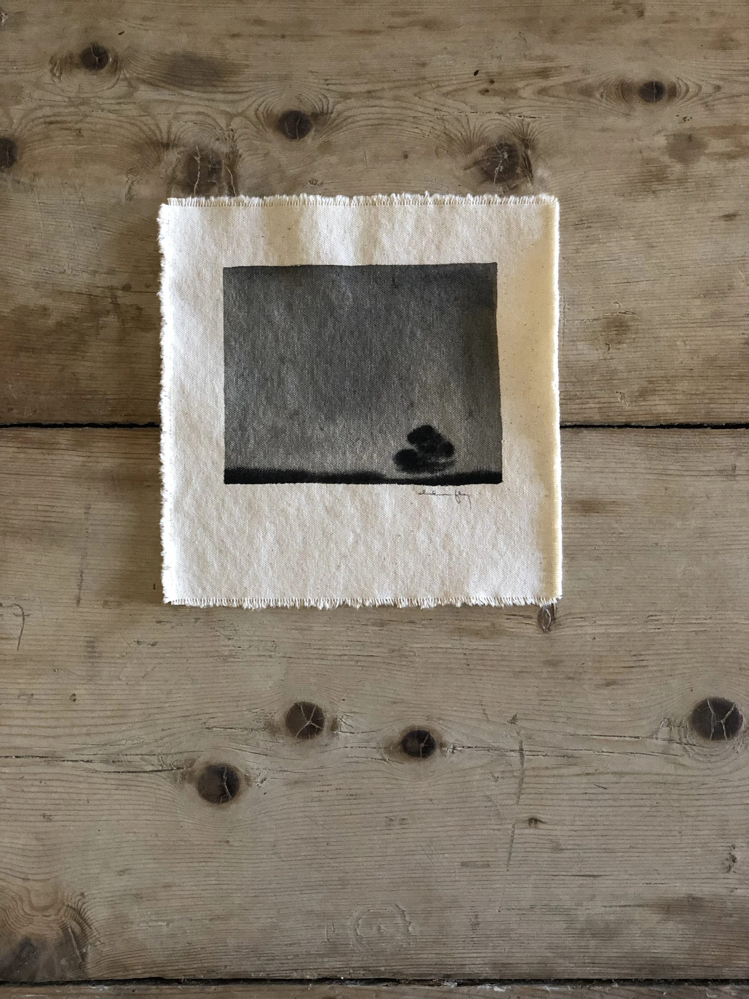 Original watercolor landscape painting on raw canvas, by Chelsea Fly. 2019.