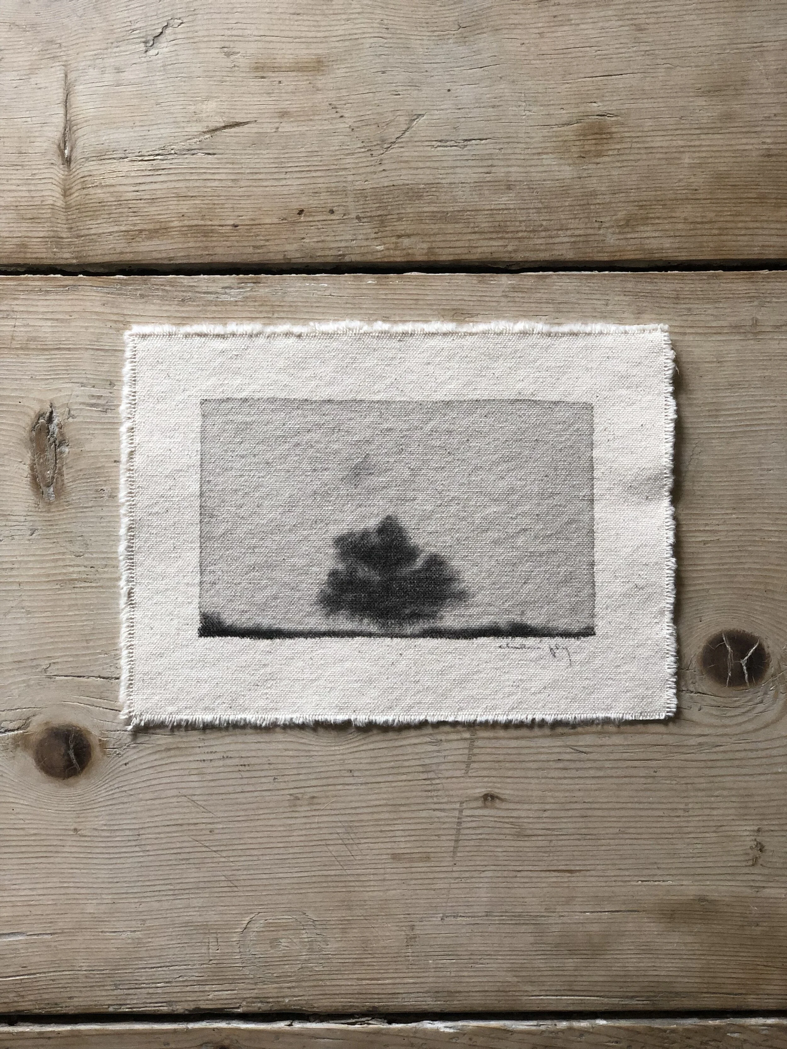 Original watercolor landscape painting on raw canvas, by Chelsea Fly. 2019.