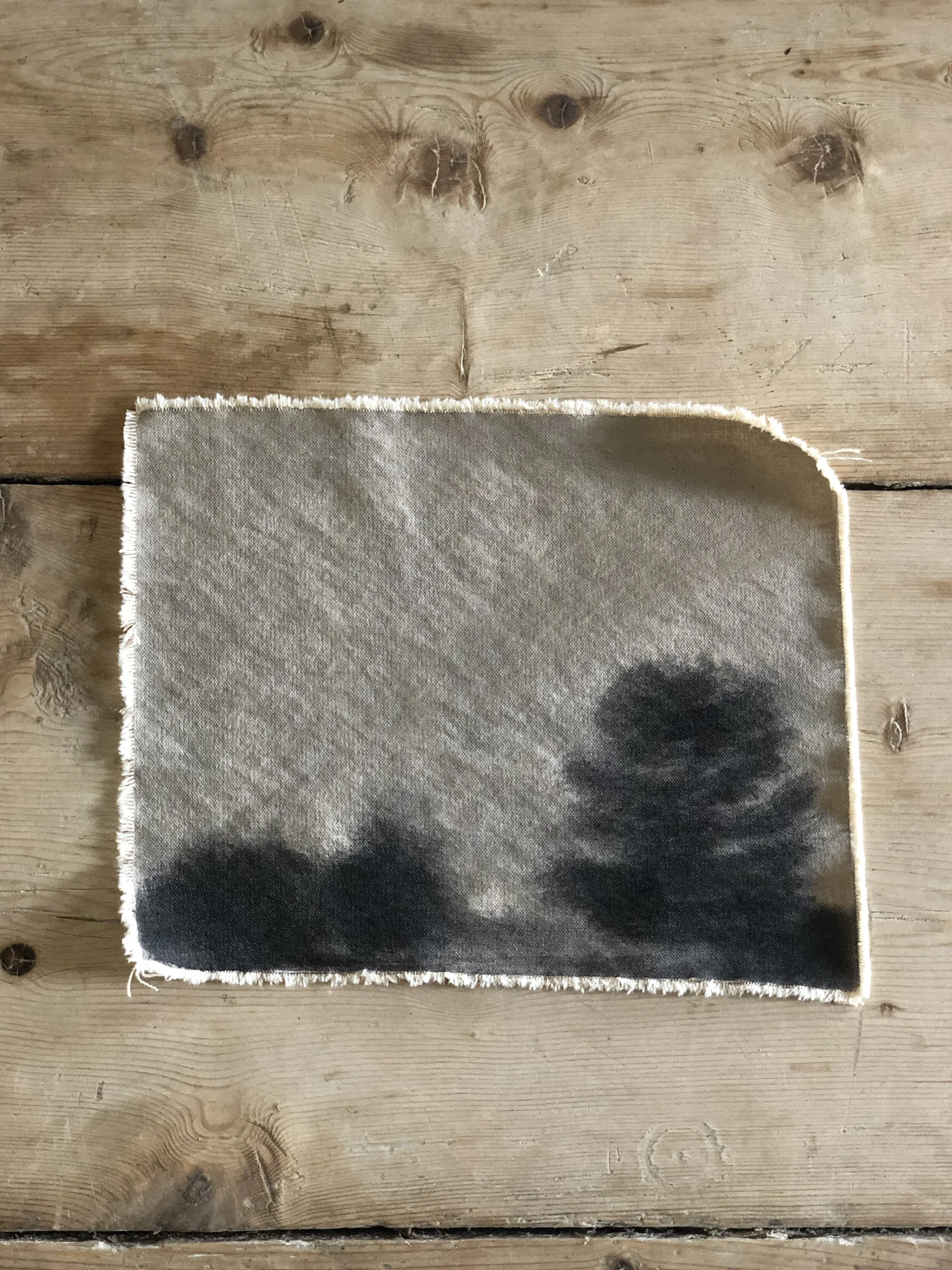 Original watercolor landscape painting on raw canvas, by Chelsea Fly. 2019.