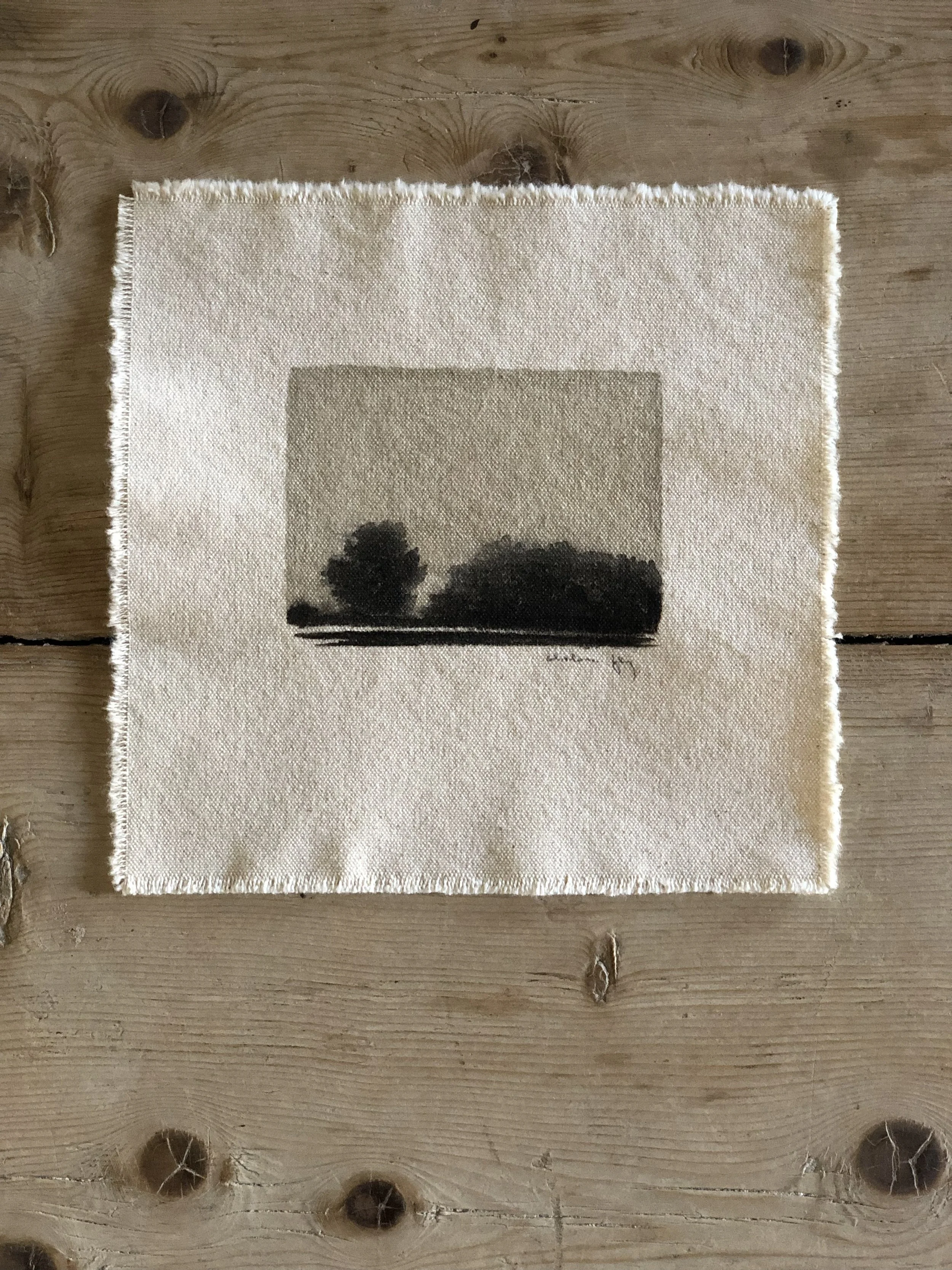 Original watercolor landscape painting on raw canvas, by Chelsea Fly. 2019.