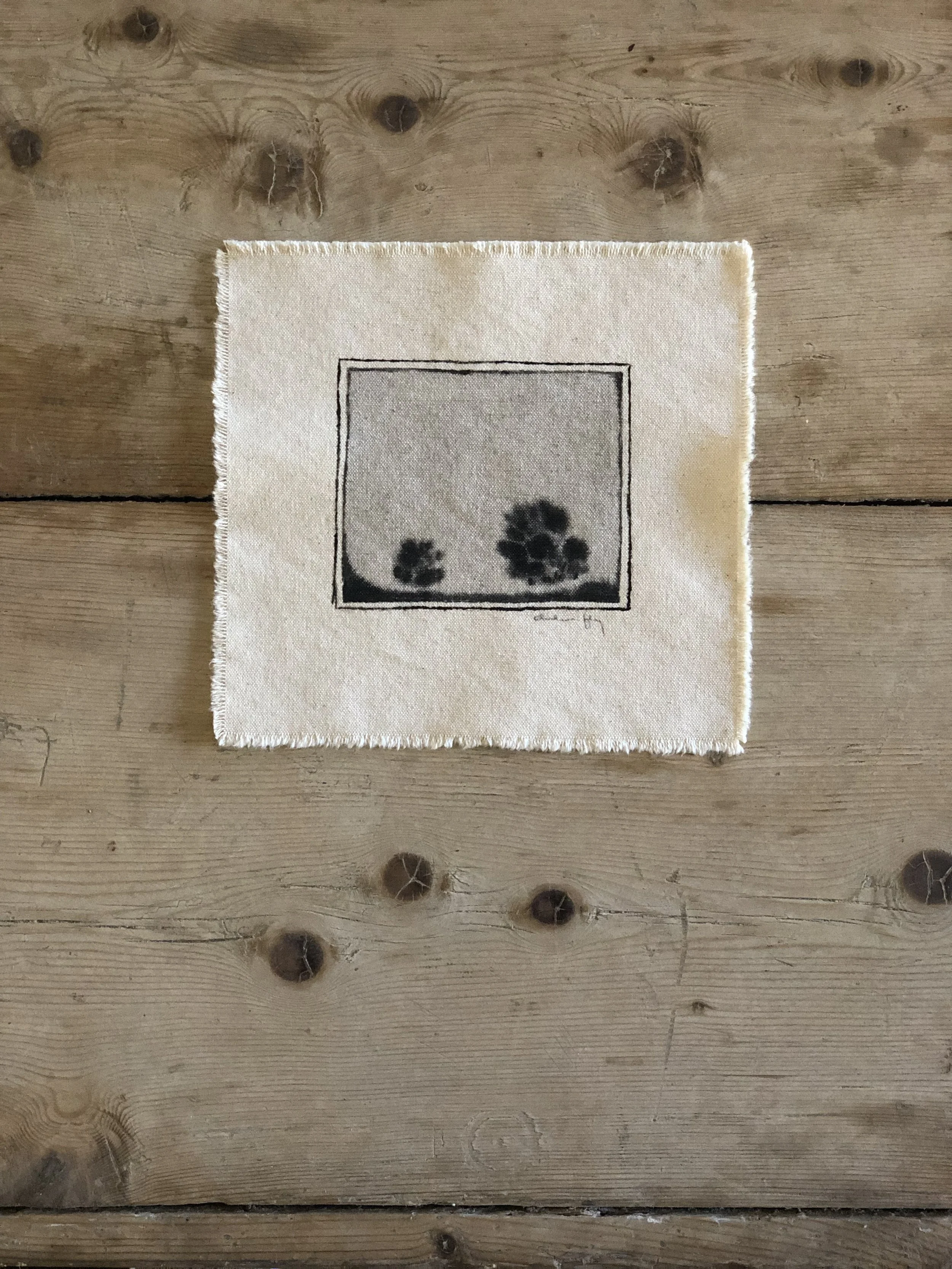 Original watercolor landscape painting on raw canvas, by Chelsea Fly. 2019.