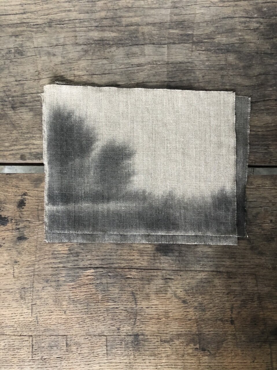 Original watercolor landscape on raw linen, by Chelsea Fly.
